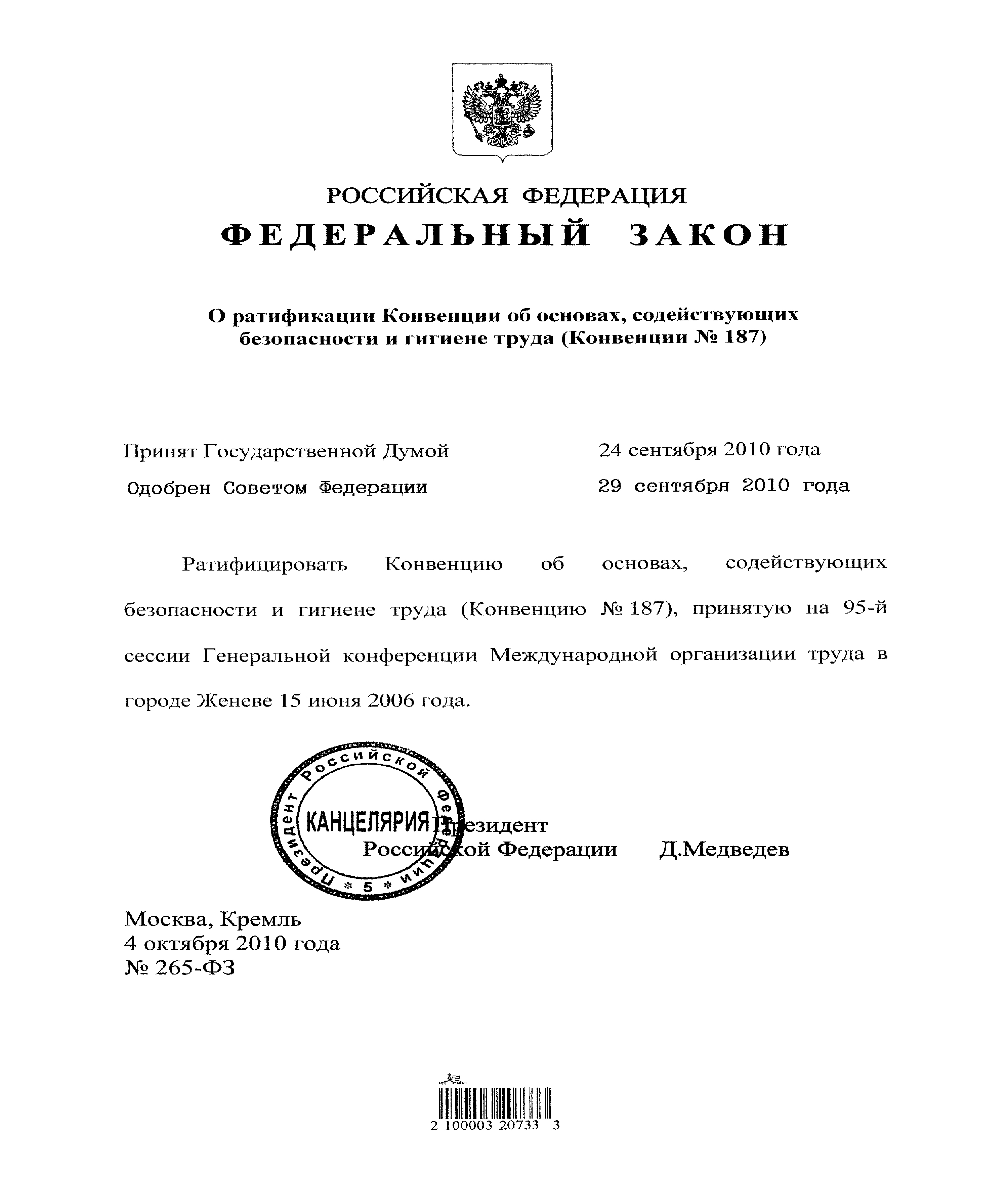 | ФЗ "О ратификации конвенции об основах, содействующих безопасности и гигиене труда" (1.1 МБ) | 1.1 МБ |