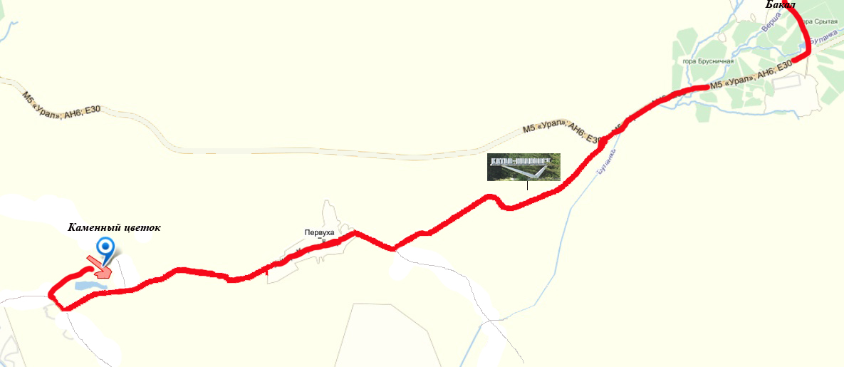 Схема проезда с трассы " М-5 Урал" до гостиничного комплекса «Каменный цветок»: