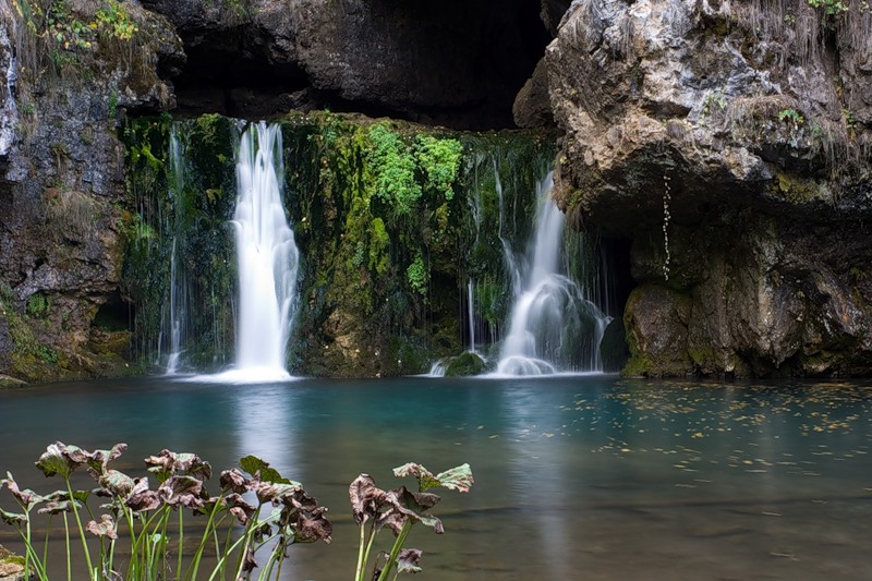 Невдалеке от водопада открыто несколько пещер. Наиболее крупной является Заповедная пещера, имеющая общую длину ходов 180 метров. Эта пещера была образована еще во время формирования речной долины. Ученые установили, что в этой пещере когда-то было святилище для далеких предков человека. Ученые нашли здесь множество черепов пещерных медведей. Многие черепа просто «вросли» в пещеру.